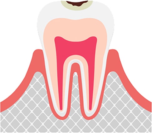 象牙質の奥の神経まで虫歯が達している状態です。痛みもありますし、食べたり飲んだりしたとき沁みることもあります。神経を除去しなければならない場合もありますが、神経を取った歯は寿命が短くなるので、この段階になる前に治療を受けましょう。